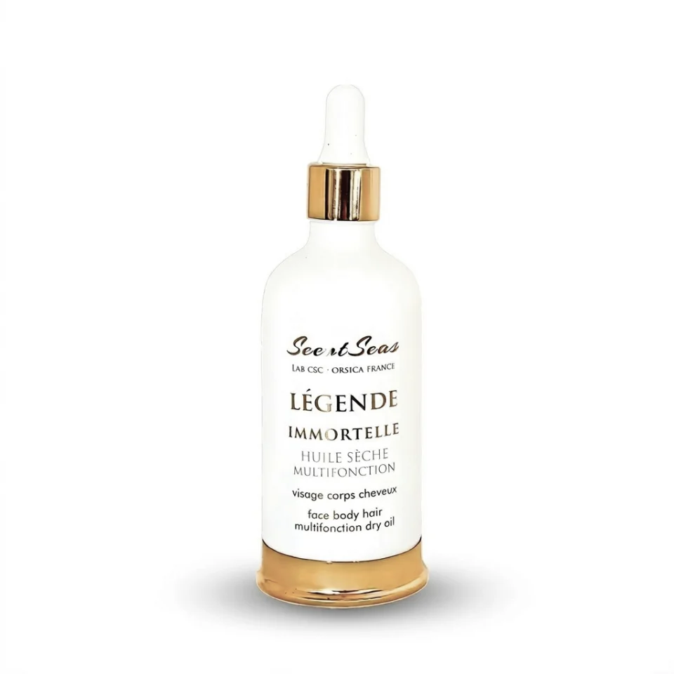 Découvrez Légende, l'huile sèche à l'immortelle bio corse de ScentSeas CSC, une légende pour sublimer votre peau et vos cheveux. Notre soin 3 en 1 offre une hydratation intense sans laisser de traces grasses. Idéal pour une utilisation après soleil ou tout au long de l'année pour répondre aux besoins des peaux assoiffées d'hydratation. Grâce à l'immortelle bio corse, plante aux vertus régénératrices, Légende aide à réparer les tissus cutanés endommagés et à préserver la jeunesse de la peau.
